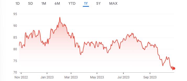 VNQ - Vanguard Real Estate Index 1-Year Chart