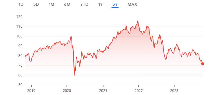 VNQ - Vanguard Real Estate Index 5-Year Chart