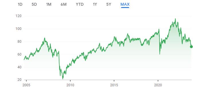 VNQ - Vanguard Real Estate Index 20-Year Chart